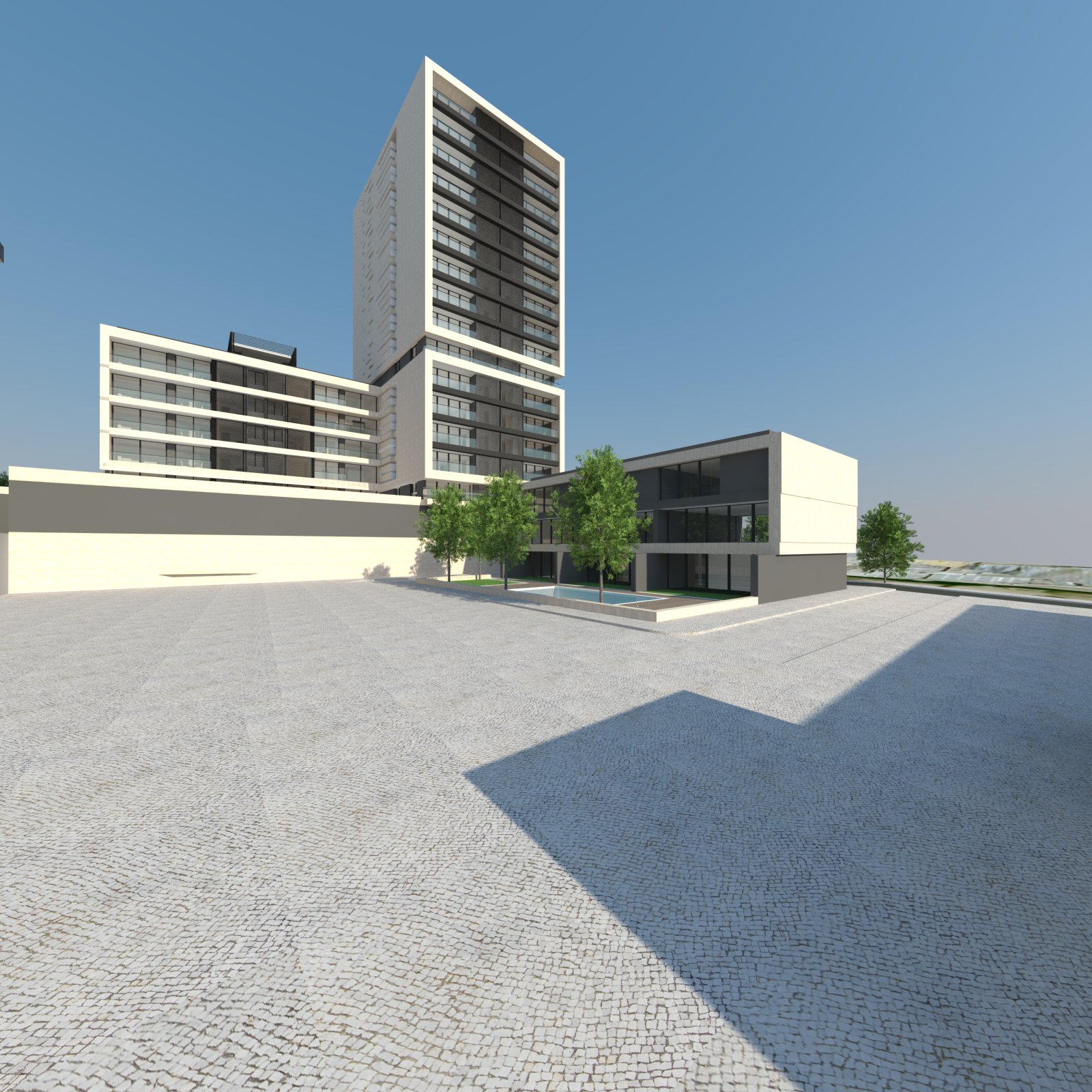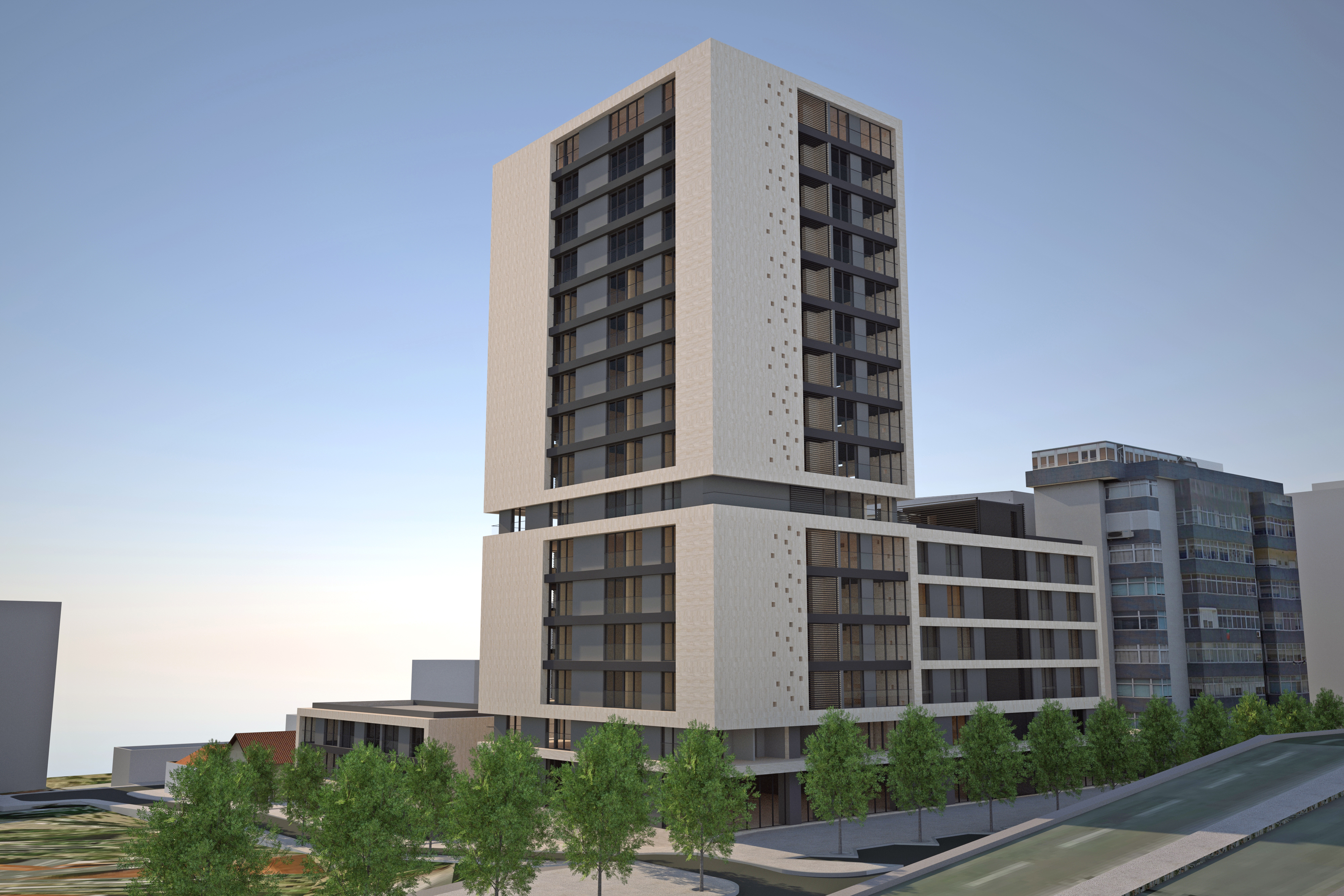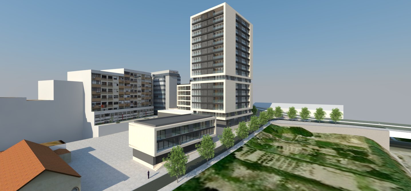 Elaboration of the Project for the complex of buildings, encompassing housing and commerce.