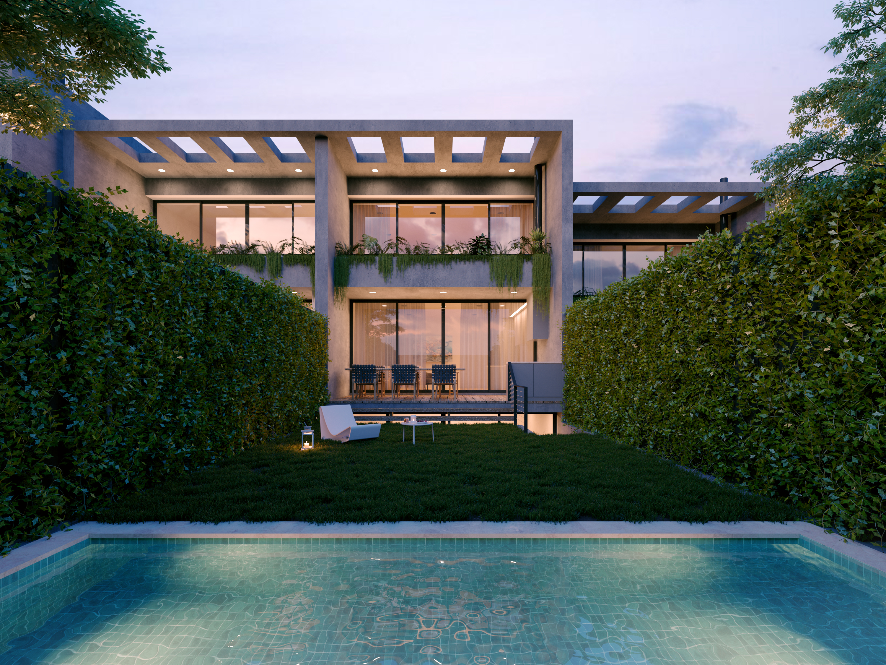 A composição tipo dos lotes é definida por uma frente não edificada que permite o acesso ao edifício, uma moradia unifamiliar que ocupa o troço central do lote e uma área de logradouro que se prolonga até ao fim da parcela.